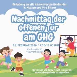 Wir laden alle Kinder der 4. Klassen und deren Eltern herzlich zum Nachmittag der offenen Tür am GHG ein!